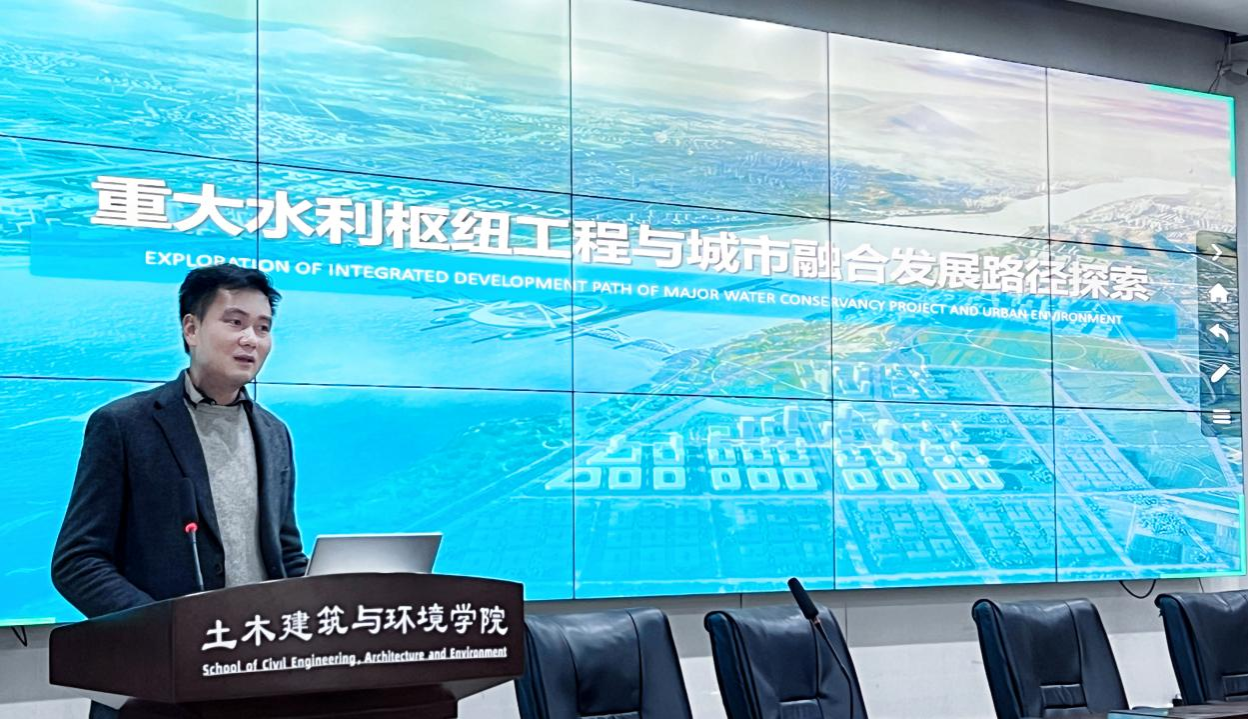 在《重大水利枢纽工程与城市融合发展路径探索》分享环节,陈文峰围绕国家战略需求、重大水利枢纽工程对城市发展的影响、重大水利枢纽工程与城市融合发展的问题与对策等方面讲解了重大水利枢纽工程内涵与特点和规划方法,并结合具体案例深入分析了水利枢纽工程与城市融合发展的规划策略。最后,陈文峰还为师生介绍了长江设计集团业务范围、人才队伍等方面情况。